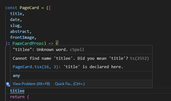 Intellisense is essentially continuously compiling your code, and reading the errors generated. Then, it will highlight exactly what line the error is on and report it back to you. This is incredibly useful, because again - it gives you feedback when you need it. I don't really want to get into a zen state only to find out that I have a compilation error I cannot solve. I also don't want to write a really cool function and be sad when I realise I still have to spend 20 mins to make it compile at all. It also lets you fully make use of type-hinting. this means that you can hover over a symbol and see what items or functions you can access. This feature is a godsend and lets you use the command-line only after you are pretty confident in what you made. It also helps you be a good human - you will never let yourself check code into git unless you see no red lines - and intellisense gives you a way to rapidly fix it. -